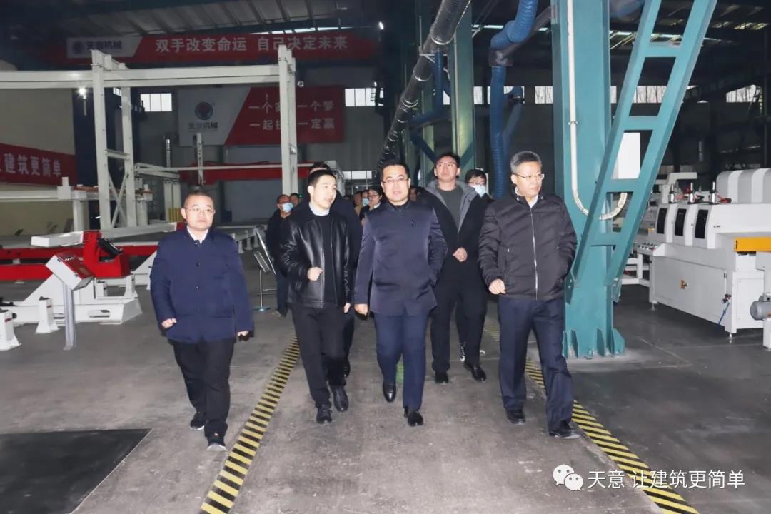 12月19日下午,嘉祥縣委副書記江峰一行蒞臨天意機(jī)械考察全市新舊動(dòng)能轉(zhuǎn)換現(xiàn)場(chǎng)觀摩項(xiàng)目——裝配式建筑自動(dòng)化PC生產(chǎn)線項(xiàng)目。兗州區(qū)區(qū)委副書記寇寧,發(fā)展和改革局副局長劉守全,天意機(jī)械總經(jīng)理劉海龍等領(lǐng)導(dǎo)陪同考察。