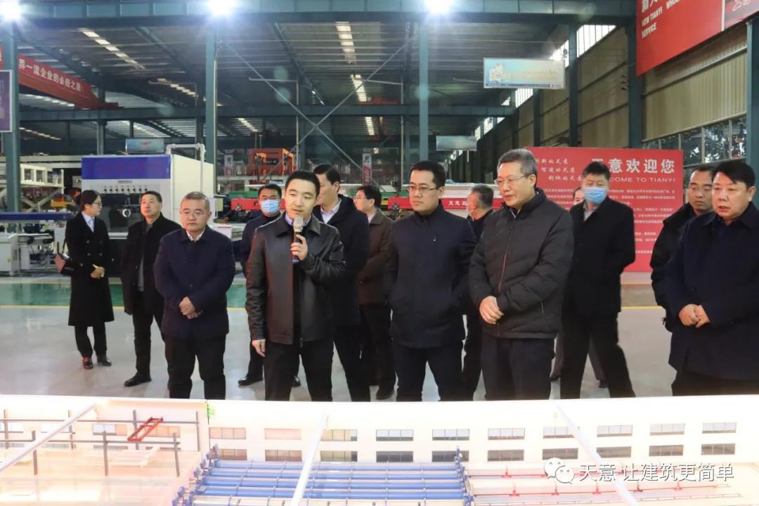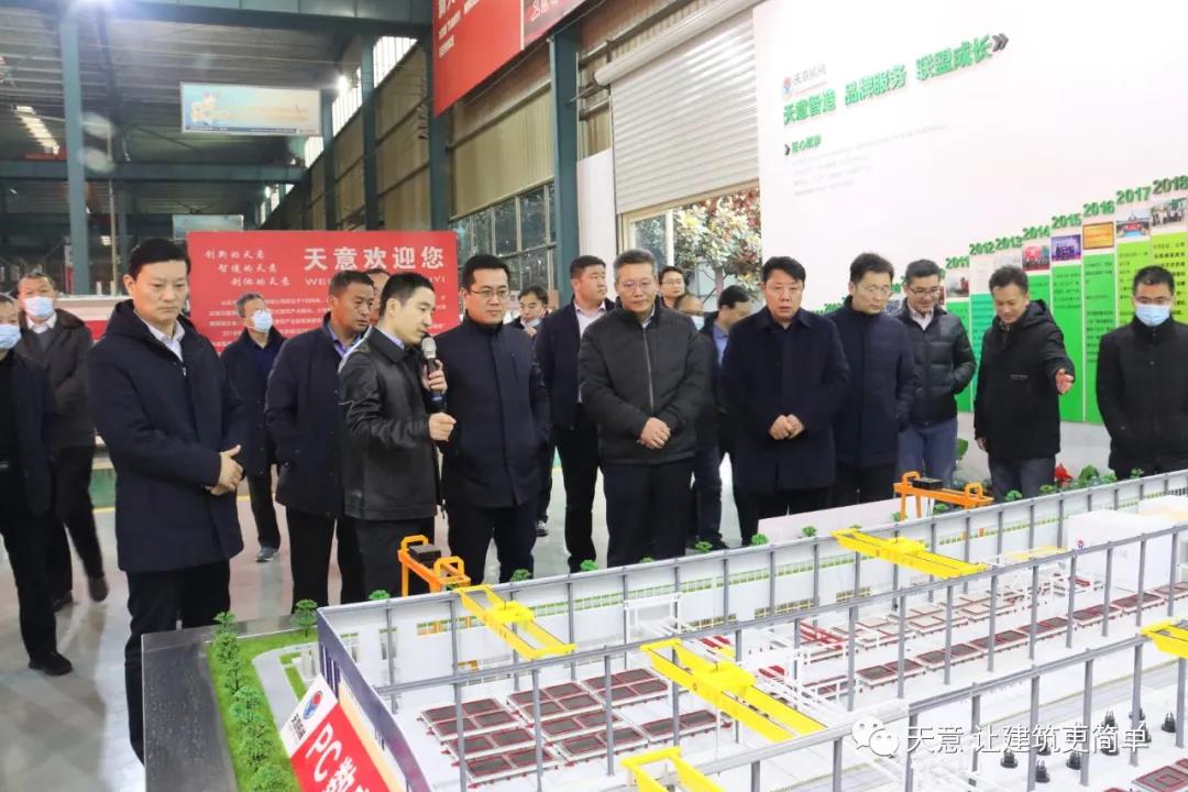 天意機(jī)械總經(jīng)理劉海龍向江副書記一行介紹了公司運(yùn)營和裝配式建筑未來發(fā)展規(guī)劃等相關(guān)情況,并對(duì)天意機(jī)械裝配式建筑自動(dòng)化PC生產(chǎn)線項(xiàng)目進(jìn)行了詳細(xì)介紹。江副書記一行對(duì)天意機(jī)械創(chuàng)新產(chǎn)品的技術(shù)先進(jìn)性以及對(duì)裝配式建筑發(fā)展的引領(lǐng)和帶動(dòng)作用給予了高度贊揚(yáng)。并表示將結(jié)合本地實(shí)際情況,取長補(bǔ)短,學(xué)習(xí)借鑒天意機(jī)械的好經(jīng)驗(yàn)好做法,把考察學(xué)習(xí)成果轉(zhuǎn)化為推動(dòng)本地企業(yè)發(fā)展的強(qiáng)大動(dòng)力和有力舉措。