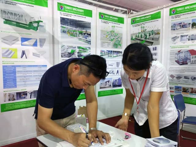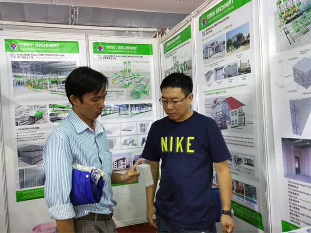 越南是亞洲經(jīng)濟(jì)發(fā)展速度的國家之一。近年來,越南正加大對(duì)基礎(chǔ)設(shè)施建設(shè)和主要城市居民住宅的改造力度,綠色建筑建材裝備缺口巨大,為適應(yīng)市場(chǎng)需求,天意機(jī)械攜綠色建材設(shè)備參展了此次展會(huì)。展會(huì)期間,外貿(mào)銷售部李經(jīng)理,認(rèn)真對(duì)待每位來訪的客戶,詳細(xì)向其介紹天意機(jī)械專利產(chǎn)品輕質(zhì)墻板生產(chǎn)線,復(fù)合墻板生產(chǎn)線,保溫裝飾一體化板生產(chǎn)線等產(chǎn)品的優(yōu)勢(shì),以及設(shè)備在東南亞地區(qū)建筑建材市場(chǎng)的影響,展會(huì)現(xiàn)場(chǎng)就有多數(shù)客戶,初步簽訂了輕質(zhì)墻板生產(chǎn)線、復(fù)合墻板生產(chǎn)線加工生產(chǎn)訂單。
