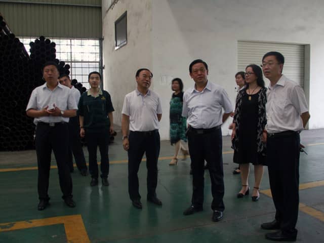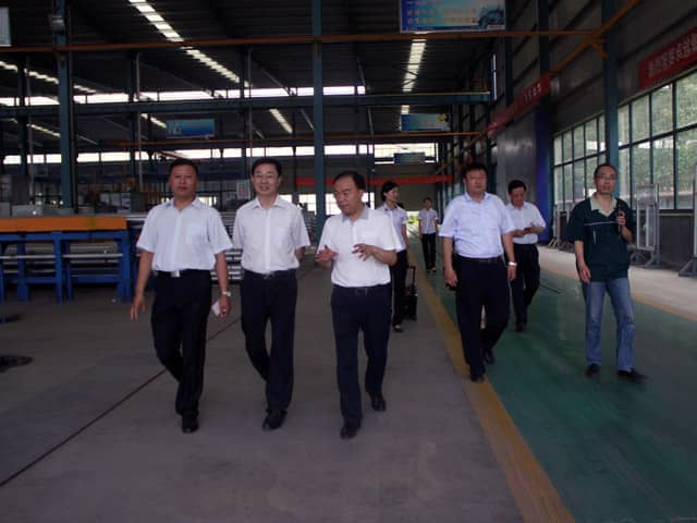 市領(lǐng)導(dǎo)先后參觀了我公司的6A辦公大樓、省級(jí)研究中心、體驗(yàn)館、樣板別墅、集成房屋、設(shè)備生產(chǎn)車間以及鋁型材加工基地。每到一處,市領(lǐng)導(dǎo)都仔細(xì)詢問了技術(shù)與生產(chǎn)等相關(guān)問題。