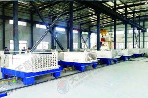TY12型墻板生產(chǎn)線包括:墻板成型機(jī)、整體穿抽管系統(tǒng)、發(fā)泡系統(tǒng)、水箱、電子計(jì)量儲(chǔ)料倉、螺旋上料輸送機(jī)、儲(chǔ)料罐、螺旋輸送機(jī)、EPS熟化料倉、硫化干燥床、EPS預(yù)發(fā)機(jī)、數(shù)控配電室、發(fā)泡攪拌機(jī)、整體出板系統(tǒng)、叉車、成品堆放區(qū)、擺渡車。