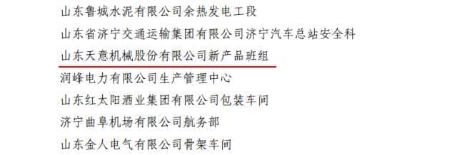 重磅消息:天意機(jī)械新產(chǎn)品班組榮獲“山東省青年安全生產(chǎn)示范崗”榮譽(yù)稱號(hào)