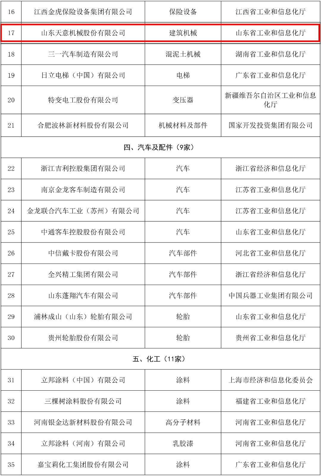 山東天意機(jī)械股份有限公司在此次工業(yè)產(chǎn)品綠色設(shè)計示范企業(yè)(第二批)公示名單之列,此次入選企業(yè)共計67家,與天意機(jī)械同一批入選的企業(yè)包括珠海格力電器股份有限公司、長虹美菱股份有限公司、海信視像科技股份有限公司、杭州老板電器股份有限公司、愛仕達(dá)股份有限公司、施耐德電氣(中國)有限公司、北京ABB低壓電器有限公司、三一汽車制造有限公司、日立電梯(中國)有限公司、特變電工股份有限公司、浙江吉利控股集團(tuán)有限公司、立邦涂料(中國)有限公司等企業(yè)。